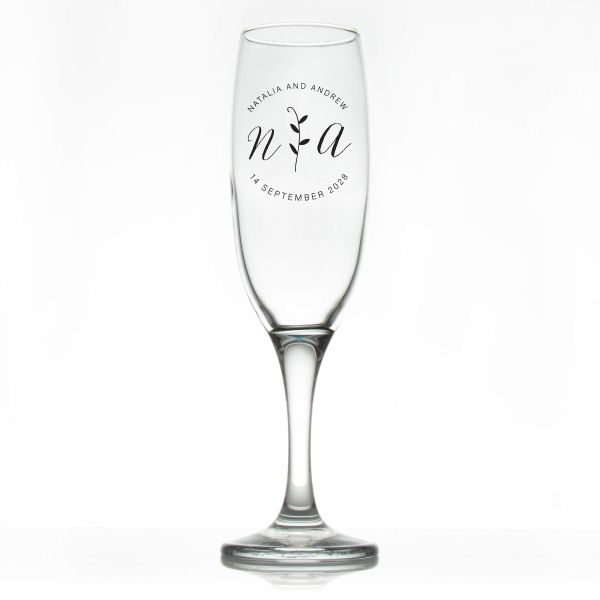 Custom Personalized Champagne Flutes - Leaves Initials Stamp - Promotional Champagne Flutes In Bulk