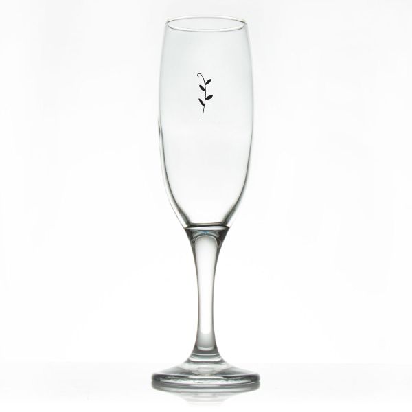 Custom Personalized Champagne Flutes - Leaves Initials Stamp - Promotional Champagne Flutes In Bulk is available to buy in increments of 12