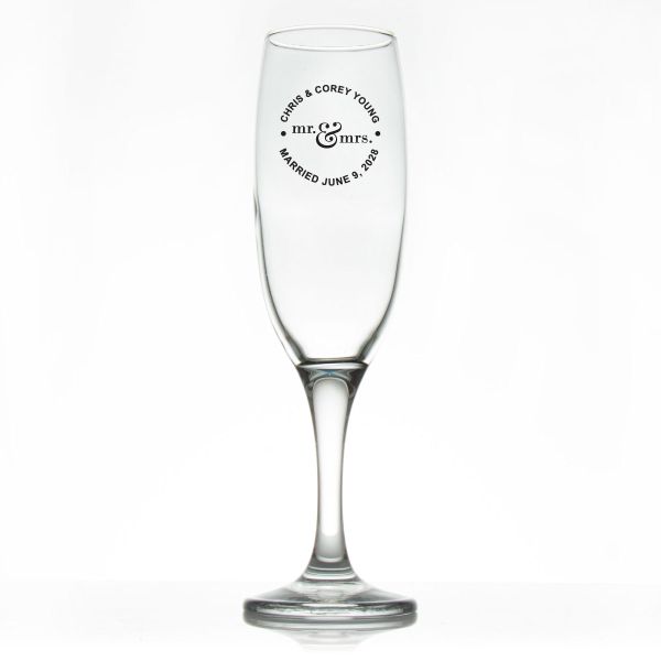 Custom Personalized Champagne Flutes - Mr. & Mrs. Circle Stamp - Promotional Champagne Flutes In Bulk