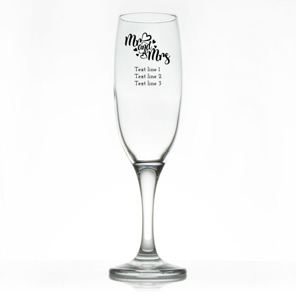 Custom Personalized Champagne Flutes - Mr & Mrs Hearts - Promotional Champagne Flutes In Bulk is available to buy in increments of 12