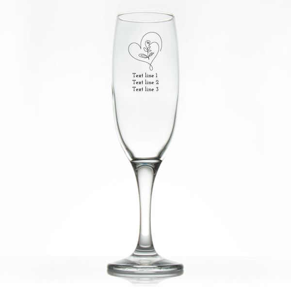 Custom Personalized Champagne Flutes - Rose Heart Line Art - Promotional Champagne Flutes In Bulk is available to buy in increments of 12