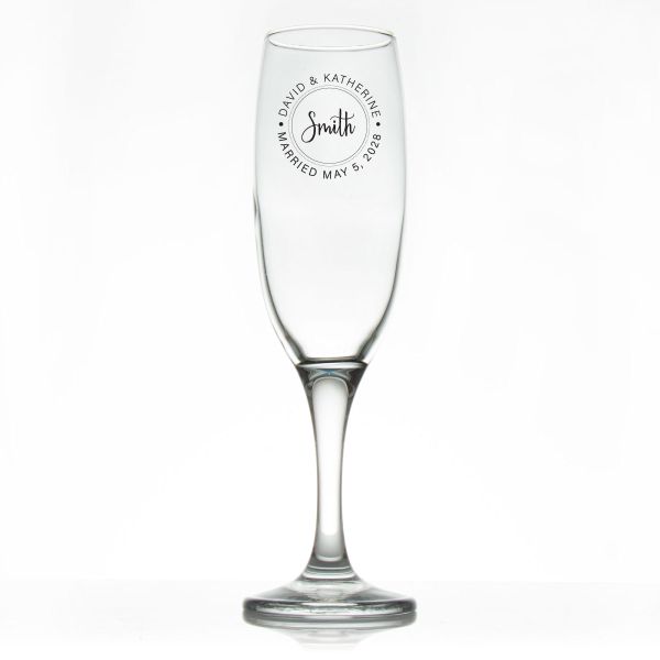Custom Personalized Champagne Flutes - Signature Circle Stamp - Promotional Champagne Flutes In Bulk