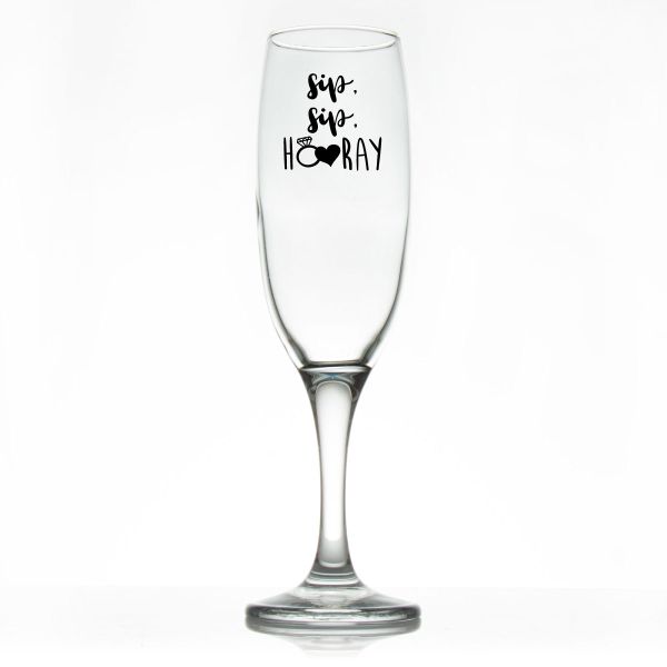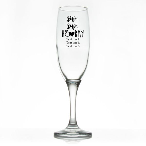 Custom Personalized Champagne Flutes - Sip, Sip, Hooray - Promotional Champagne Flutes In Bulk is available to buy in increments of 12