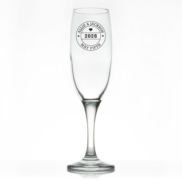 Custom Personalized Champagne Flutes - Heart Circle Stamp - Promotional Champagne Flutes In Bulk