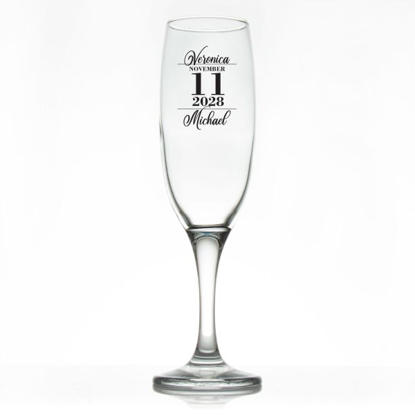 Custom Personalized Champagne Flutes - Stacked Date Written Names - Promotional Champagne Flutes In Bulk