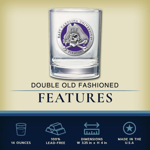 East Carolina University Pirates - Royal Decanter with 2 Double Old Fashioned Glasses