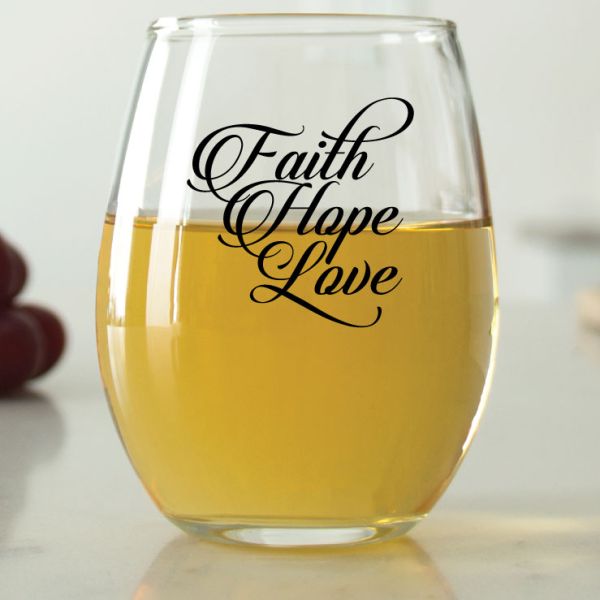 Elegant Faith Hope Love - 9 oz. ARC Perfection Stemless Wine Glasses