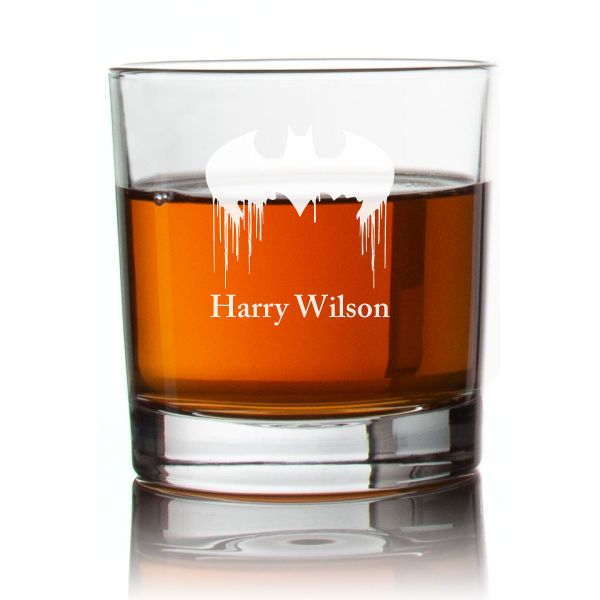 Engraved Batman Blood Dripping Rocks Glass - Personalized Whiskey Glasses - Man Cave Gift Ideas - Gifts For Him - 2pcs