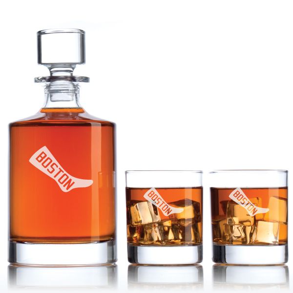 Engraved Boston Red Sox 1908 Logo - Major League Baseball - Personalized Bellagio Decanter Set - Baseball Fanatic Gift Ideas