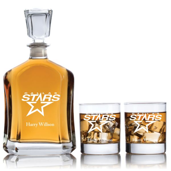 Engraved Hockey Dallas Stars - Capitol Decanter Set with Rocks Glasses - 3pcs