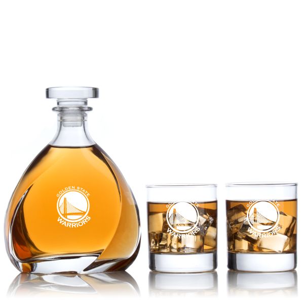 Engraved Golden State Warriors Basketball - Personalized Madison Decanter Set with Old Fashioned Whiskey Glasses