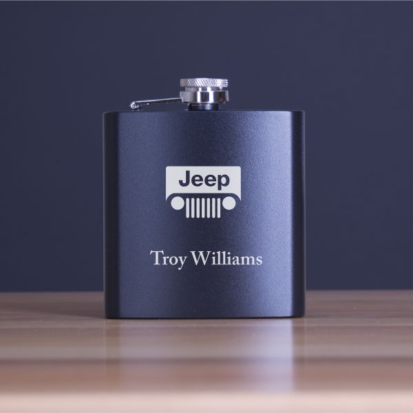 Engraved Jeep - Personalized 6oz Matte Black Powder Coated Stainless Steel FSK602