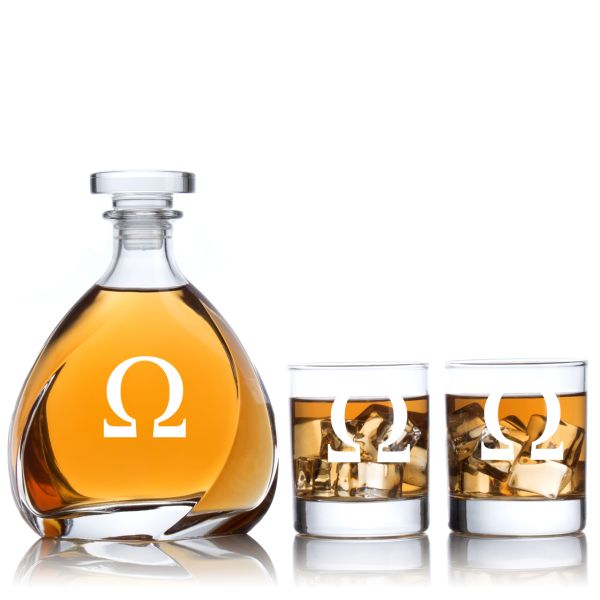 Engraved Omega - Personalized Madison Decanter Set with Old Fashion Whiskey Glasses