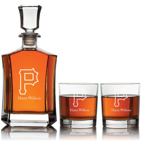 Engraved Pirates Vintage P - Personalized Crown Decanter Set with Whiskey Glasses