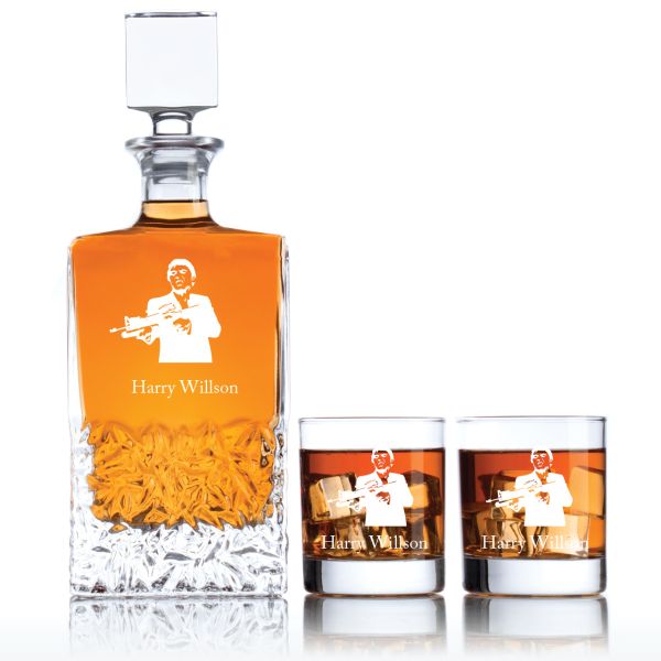 Engraved Scar Face - Personalized Excalibur Decanter Set with Old Fashioned Whiskey Glasses