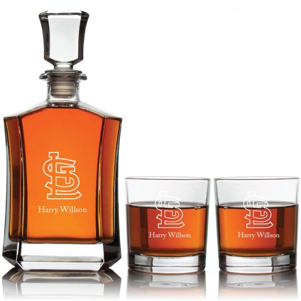 Engraved St Louis Cardinals - Personalized Crown Decanter Set with Whiskey Glasses