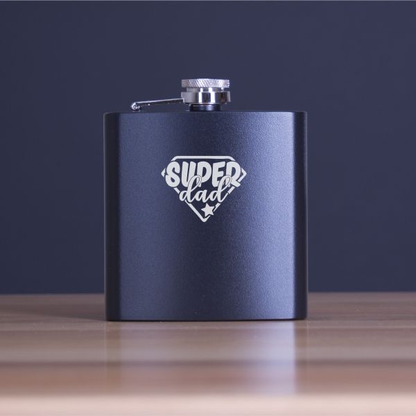 Engraved Super Hero Dad - Personalized 6oz Matte Black Powder Coated Stainless Steel FSK602