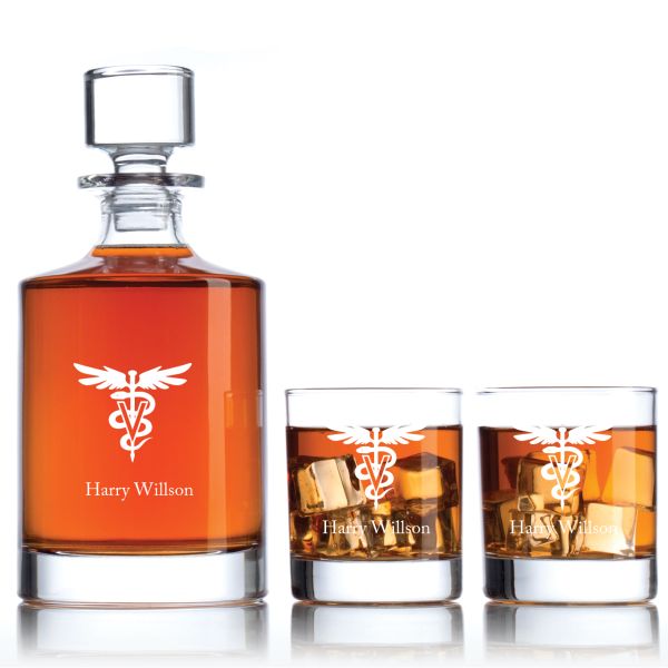 Engraved Veterinary - Personalized Bellagio Decanter Set with Old Fashion Whiskey Glasses