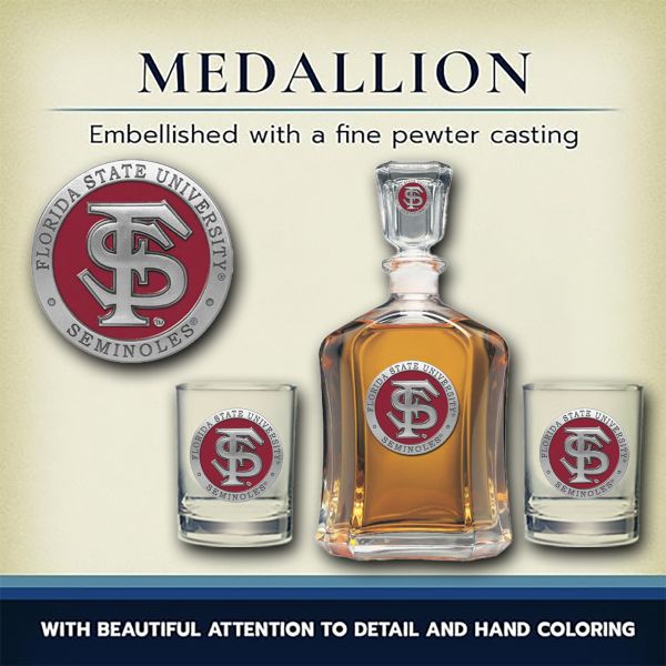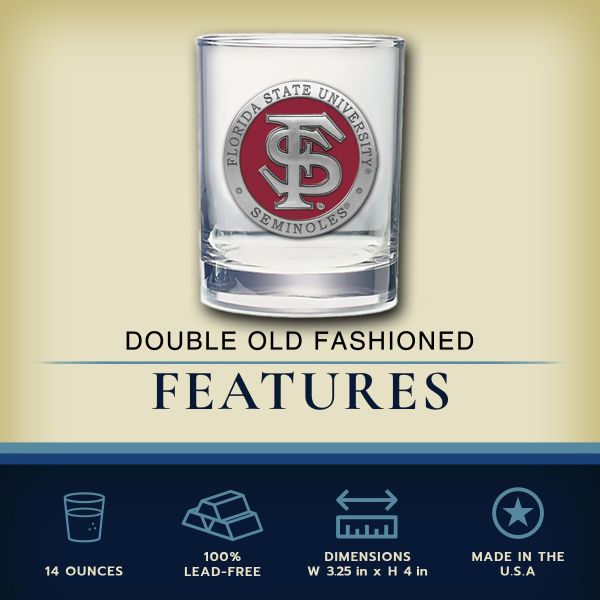 Florida State University - FS Logo - Capitol Decanter with 2 Double Old Fashioned Glasses