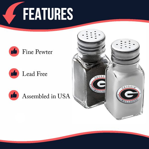 • CELEBRATE YOUR NCAA TEAM - This is a set of salt & pepper shakers with a fine pewter logo medallion of your NCAA team bonded to the side. Made in USA. Heritage Pewter has been hand-crafting fine pewter gifts since 1988. We offer an array of pewter products, ranging from barware to wind chimes, golf clubs to coffee mugs.