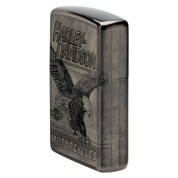 This sleek High Polish Black lighter features a vintage-inspired Harley-Davidson design using our subtle and sophisticated Photo Image 360° process. Comes packaged in a gift box. For optimal performance fill with Zippo lighter fuel.