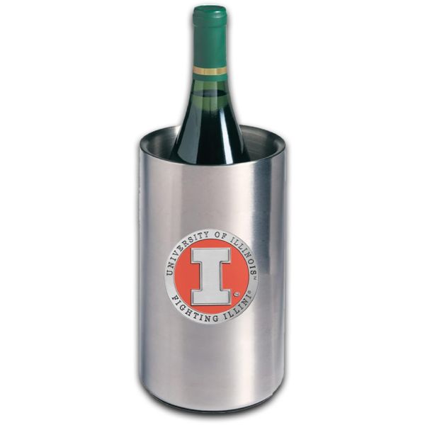 This Wine Chest Set comes with 2 - 12 oz Stemmed Goblets with a pewter medallion bonded to it, a double-wall insulated stainless steel chiller also with a pewter logo medallion bonded to the front.