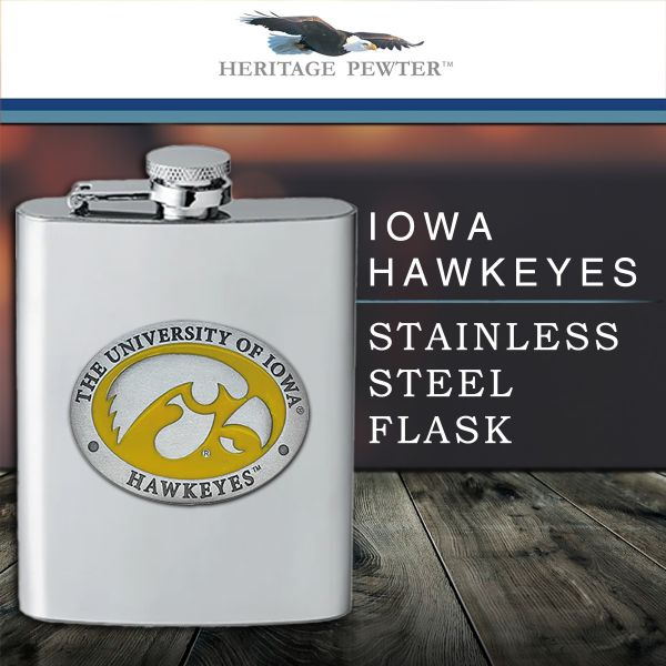 • PERFECT GIFT FOR ANY NCAA FAN -This 8-ounce flask is made from 100% stainless steel and features an intricate Fine Pewter casting--makes a great gift, especially for groomsmen! These flasks are lightweight and easy-to-clean and feature an attached cap that can't be lost or misplaced.