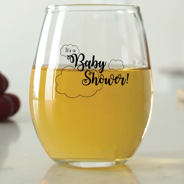 It's a Baby Shower with Clouds - 9 oz. ARC Perfection Stemless Wine Glasses is available to buy in increments of 12