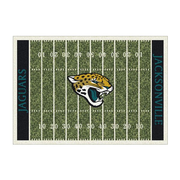 Show your team spirit with this officially licensed Jacksonville Jaguars area rug, styled to resemble a football field! Made with premium Stainmaster nylon fiber, this rug is fade resistant, durable and easy to care for. Endura-Loc high performance backing helps assure the rug always lies flat and serged edges give your rug the quality that your home and team deserve.
