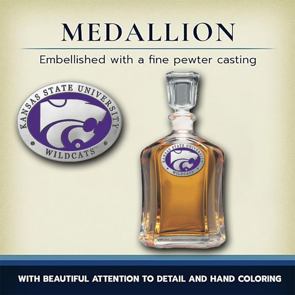 This 24-ounce glass decanter is embellished with a fine pewter casting of your favorite NCAA team. This may be paired with two Double Old-Fashioned glasses. A great addition to any home bar! Made in USA.