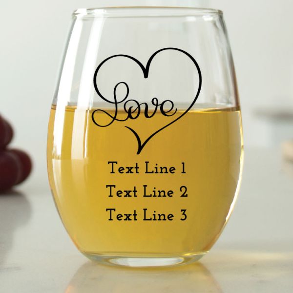 Love Heart Script - 9 oz. ARC Perfection Stemless Wine Glasses is available to buy in increments of 12