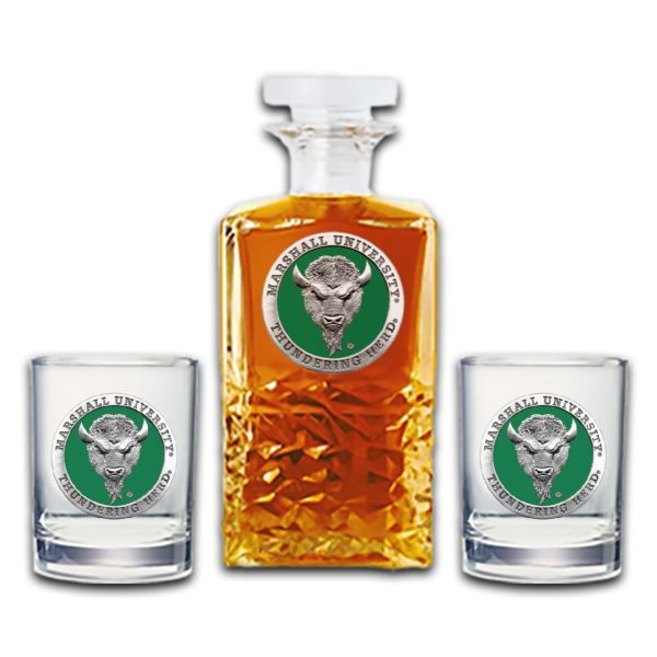Marshall Thundering Herd - Heritage Decanter with 2 Old Fashioned Glasses