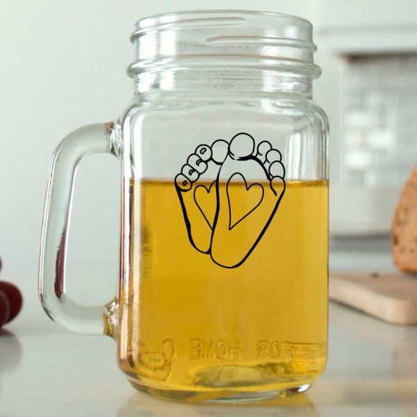 Mason Mug - Baby Feet with Heart - Personalized Mason Jar 16oz is available to buy in increments of 12