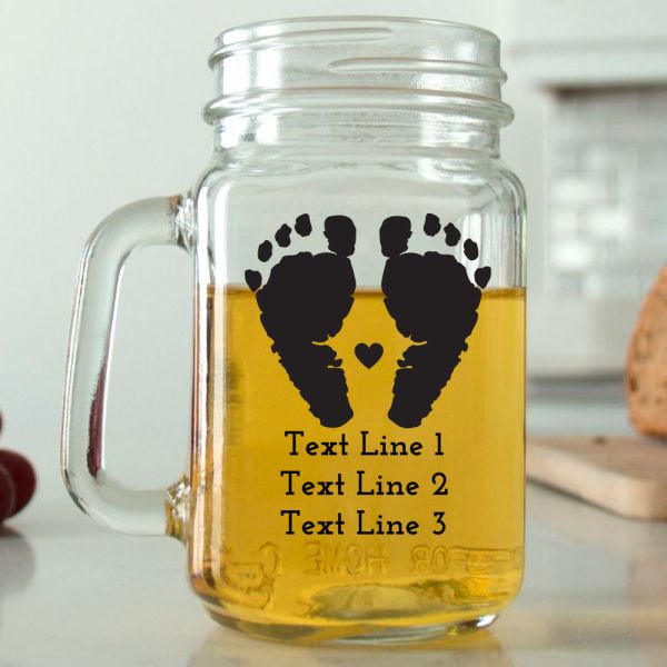 Mason Mug - Baby Footprints Silhouette - Personalized Mason Jar 16oz
