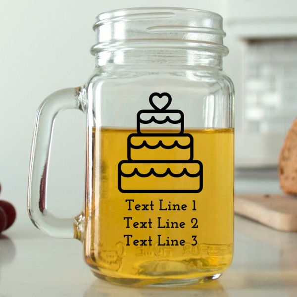 Mason Mug - Birthday Cake with Heart - Personalized Mason Jar 16oz is available to buy in increments of 12