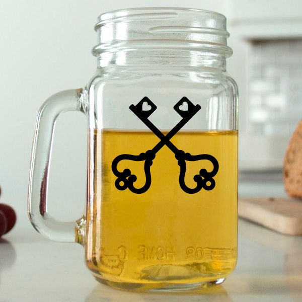 Mason Mug - Crossed Keys- Personalized Mason Jar 16oz is available to buy in increments of 12