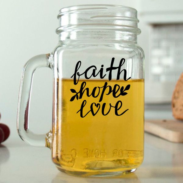 Mason Mug - Faith Hope Love - Personalized Mason Jar 16oz