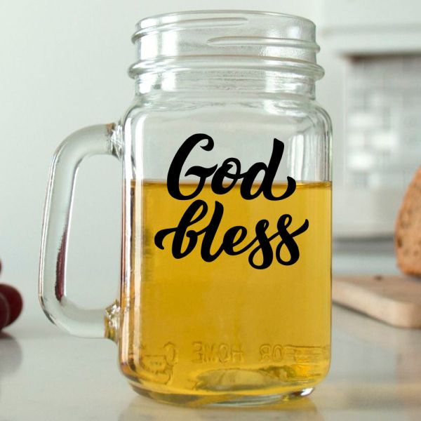 Mason Mug - God Bless - Personalized Mason Jar 16oz