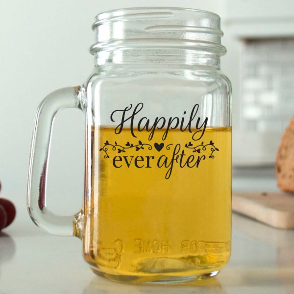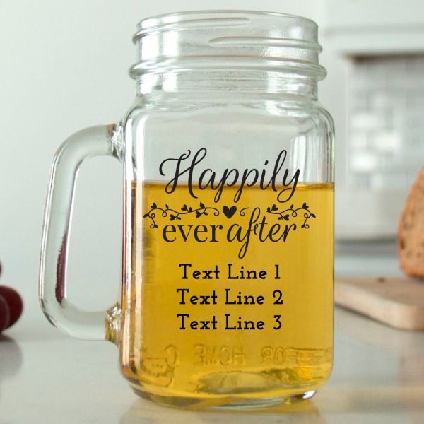 Mason Mug - Happily Ever After Hearts - Personalized Mason Jar 16oz is available to buy in increments of 12