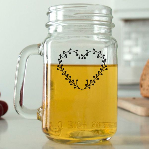 Mason Mug - Heart Flower Wreath with Initials - Personalized Mason Jar 16oz is available to buy in increments of 12