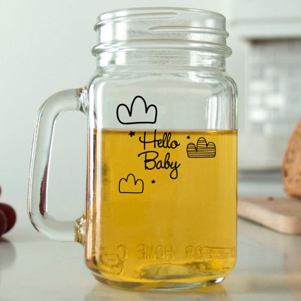 Mason Mug - Hello Baby Clouds - Personalized Mason Jar 16oz is available to buy in increments of 12