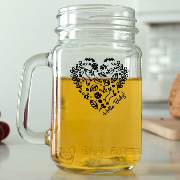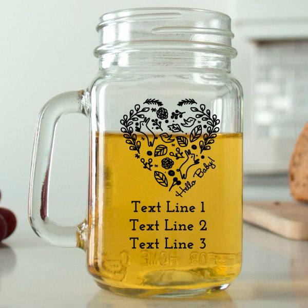 Mason Mug - Hello Baby Heart - Personalized Mason Jar 16oz