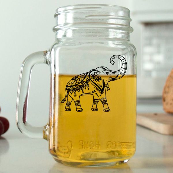 Mason Mug - Indian Culture Elephant - Personalized Mason Jar 16oz is available to buy in increments of 12