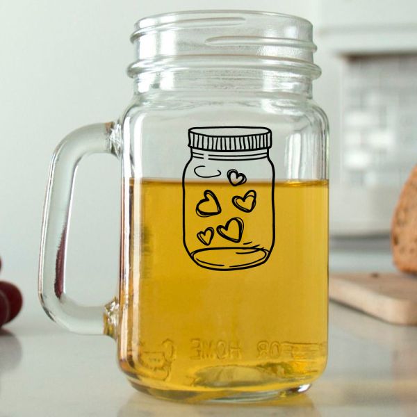 Mason Mug - Jar of Hearts - Personalized Mason Jar 16oz is available to buy in increments of 12