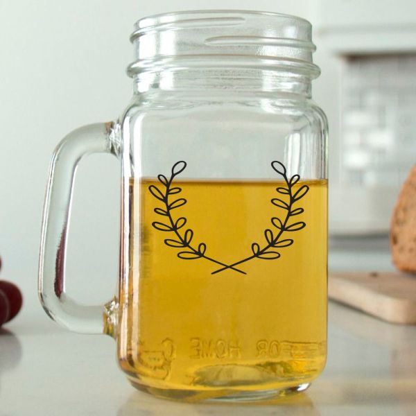 Mason Mug - Laurel Leaf Signature Initial - Personalized Mason Jar 16oz is available to buy in increments of 12