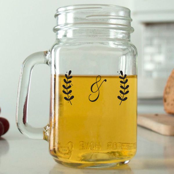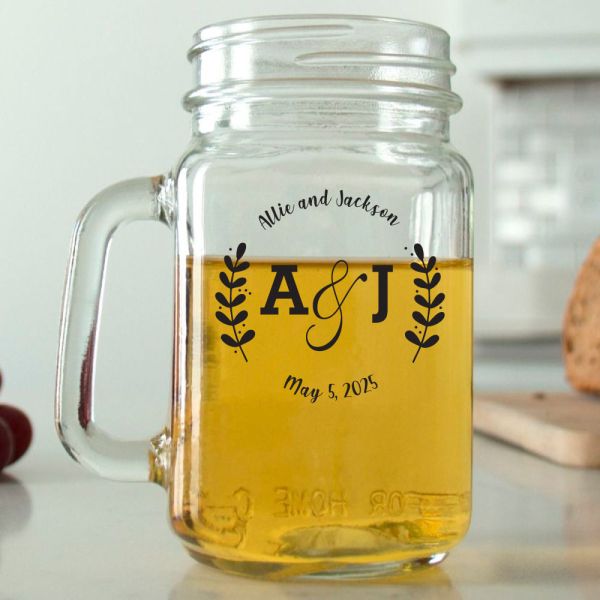 Mason Mug - Leaves Initials - Personalized Mason Jar 16oz is available to buy in increments of 12