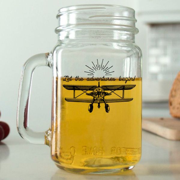 Mason Mug - Let the Adventures Begin - Airplane- Personalized Mason Jar 16oz