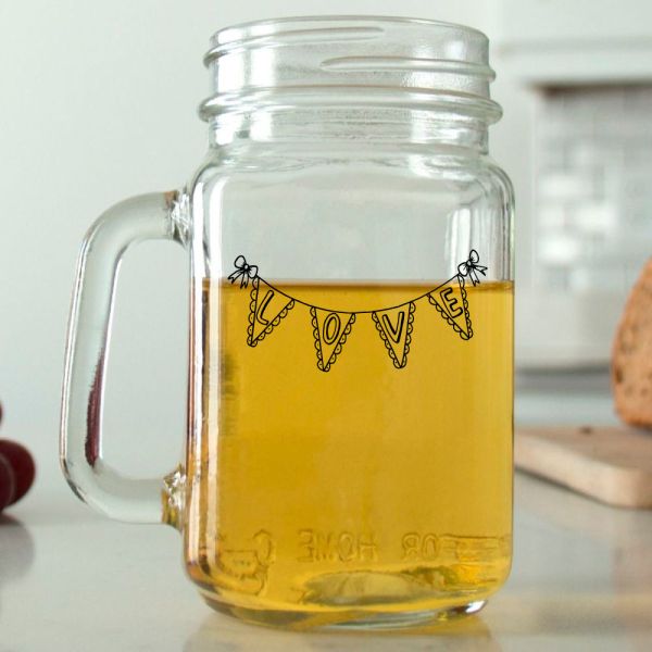 Mason Mug - Love Flag Banner - Personalized Mason Jar 16oz is available to buy in increments of 12