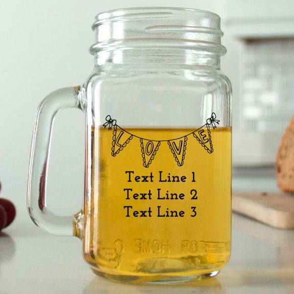 Mason Mug - Love Flag Banner - Personalized Mason Jar 16oz