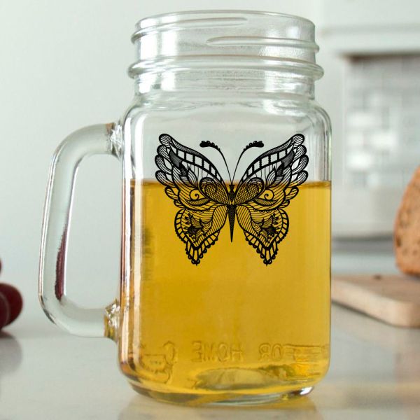 Mason Mug - Mandala Butterfly - Personalized Mason Jar 16oz is available to buy in increments of 12